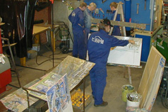Alle malerierne hænger i dag i produk-tionshallerne. De bliver jævnligt skiftet rundt. Medarbejderne fortæller gerne gæster, hvad billederne betyder for dem.